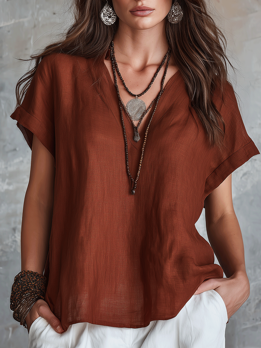 Airy Linen Short-Sleeve Top For Modern Bohemian Style
