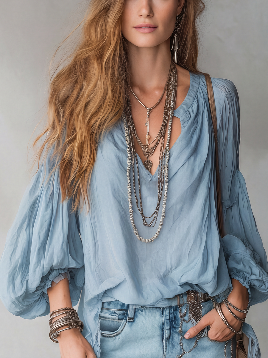 Airy Mist-Blue Bohemian Blouse