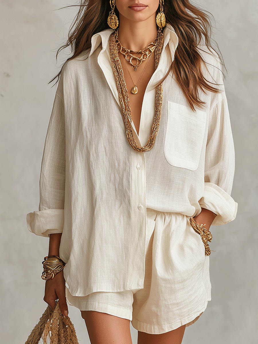 Bohemian Linen Oversized Shirt With Easy Shorts