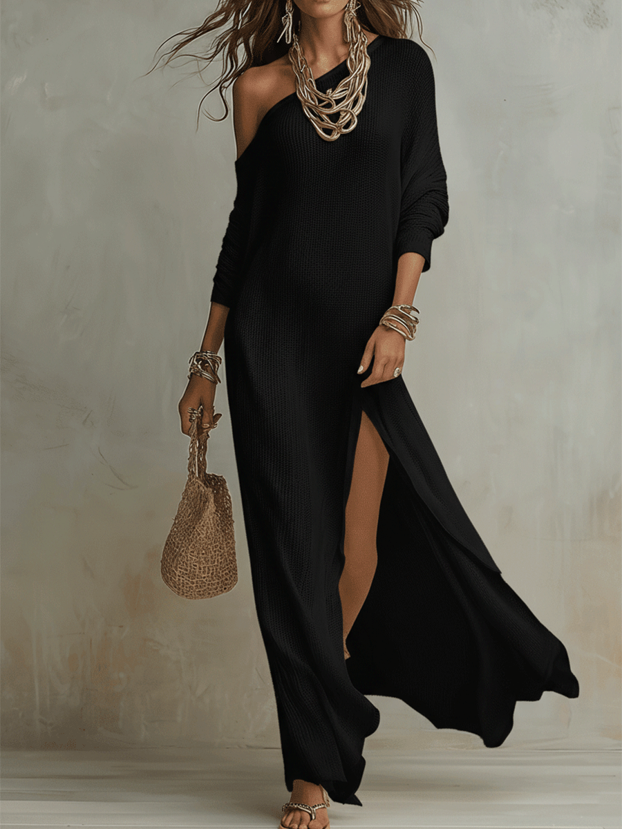 Bohemian One-Shoulder Textured Maxi Dress In Soft Ivory