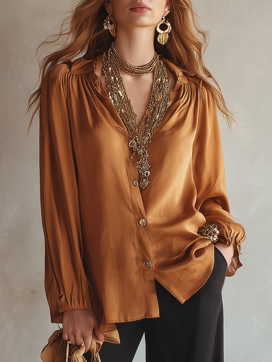 Caramel Brown Silky Casual Bohemian Shirt