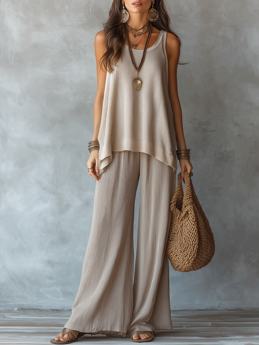 Effortless Boho Sleeveless Textured Top & Wide-Leg Pants Set