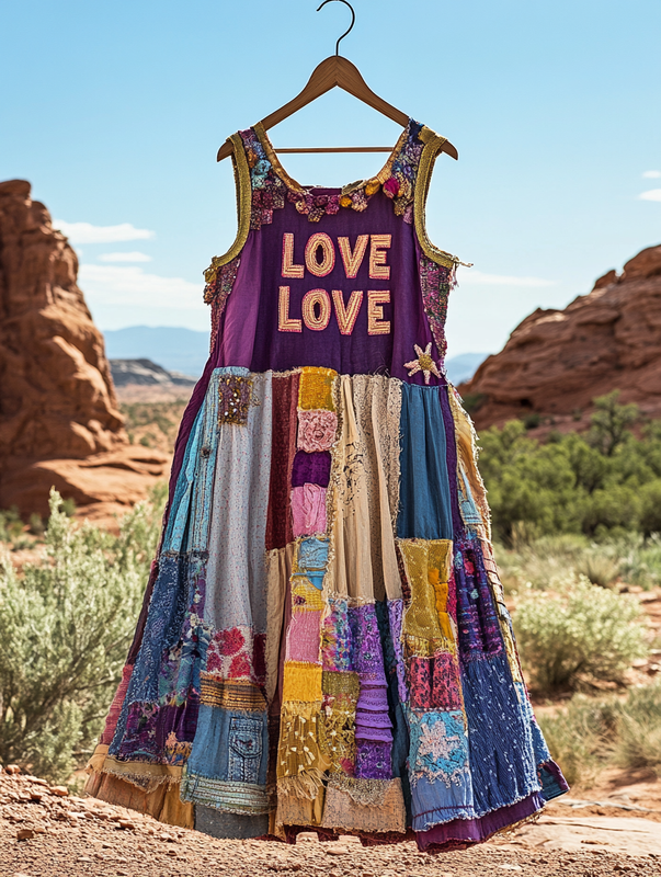 Summer vacation loose patchwork cotton and linen dress 0245