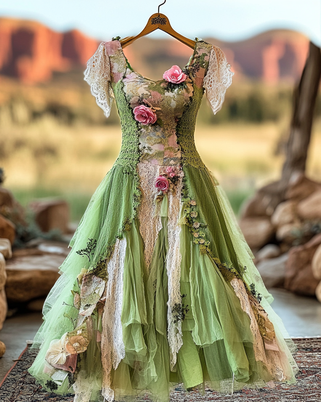 Summer Vintage Irregular Lace Patchwork Dress c3c4
