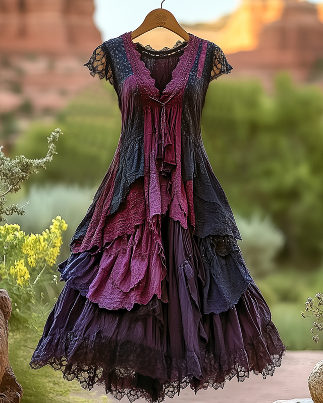 Summer Vintage Irregular Lace Patchwork Dress f4f2